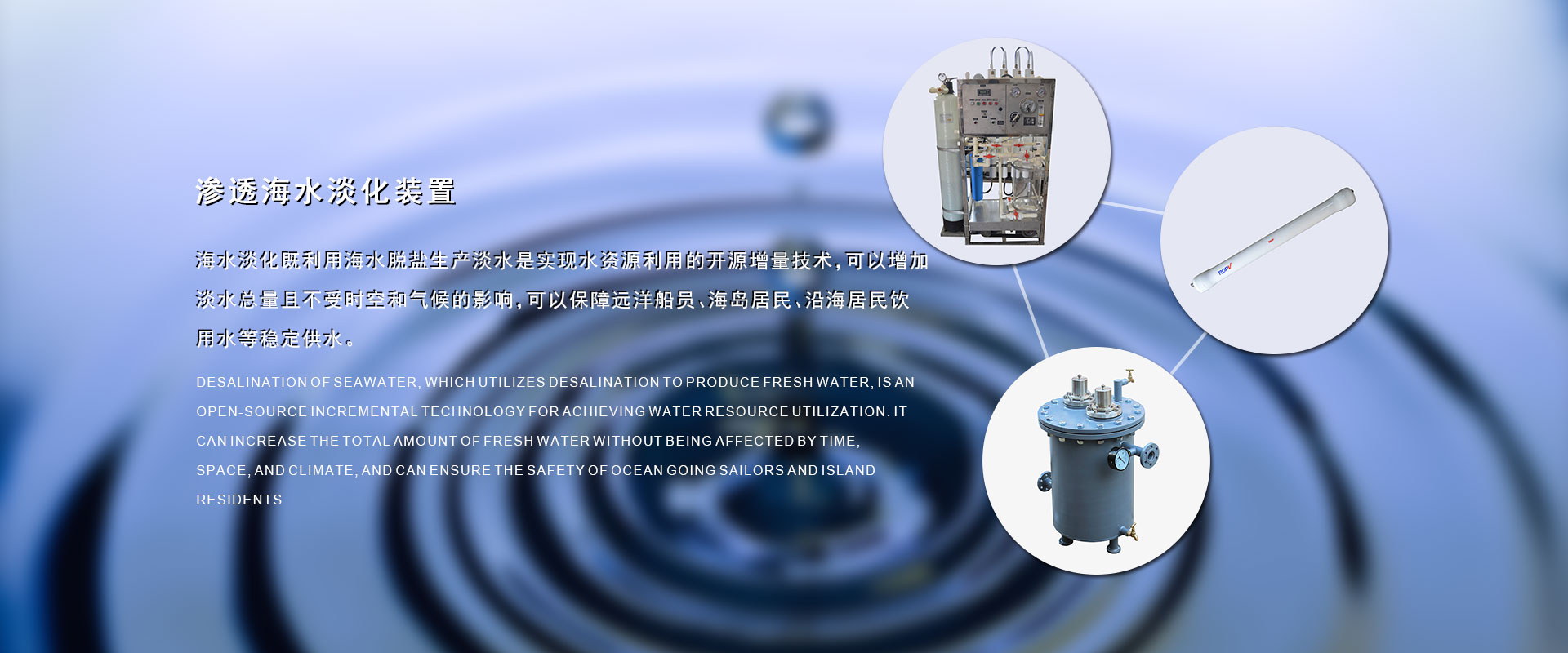 在過去的17年里我們?yōu)榇疤峁┖KO備解決了因船的續(xù)航長而不能解決的淡水問題,全球的水資源越來越少,我們以改善遠洋船員、海島居民的生活水資源為已任,以科技創(chuàng)新、誠信經(jīng)營為核心競爭力。